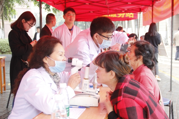 此次惠民活动从早上的九点一直持续至下午六点,为近千名师生员工做了眼体检。参与活动的师生不仅会拿到他们洁净如新的眼镜,而且还有一张眼睛“体检单”,师生员工对这一真正服务大家的义诊活动纷纷“点赞”。在活动现场,挤满了前来咨询和检测的老师与同学,一群身着白色制服的医生护士,熟练地操作着电脑验光仪、裂隙灯、超声波眼镜清洗仪等专业眼科仪器,为大家进行眼健康服务。针对大家提出的关于眼健康的问题,医生们现场一一耐心解答,并普及一些涵盖年轻人常见的屈光不正、电脑眼病、干眼症、视疲劳等基本眼科知识。对于一些眼睛近视度数变化较大、近视度数较深、眼部有不适症状的师生员工一一给出了眼睛治疗保养和眼镜验配的专业意见。眼科小伙伴们专业又敬业的服务态度得到了师生员工的一致认同。