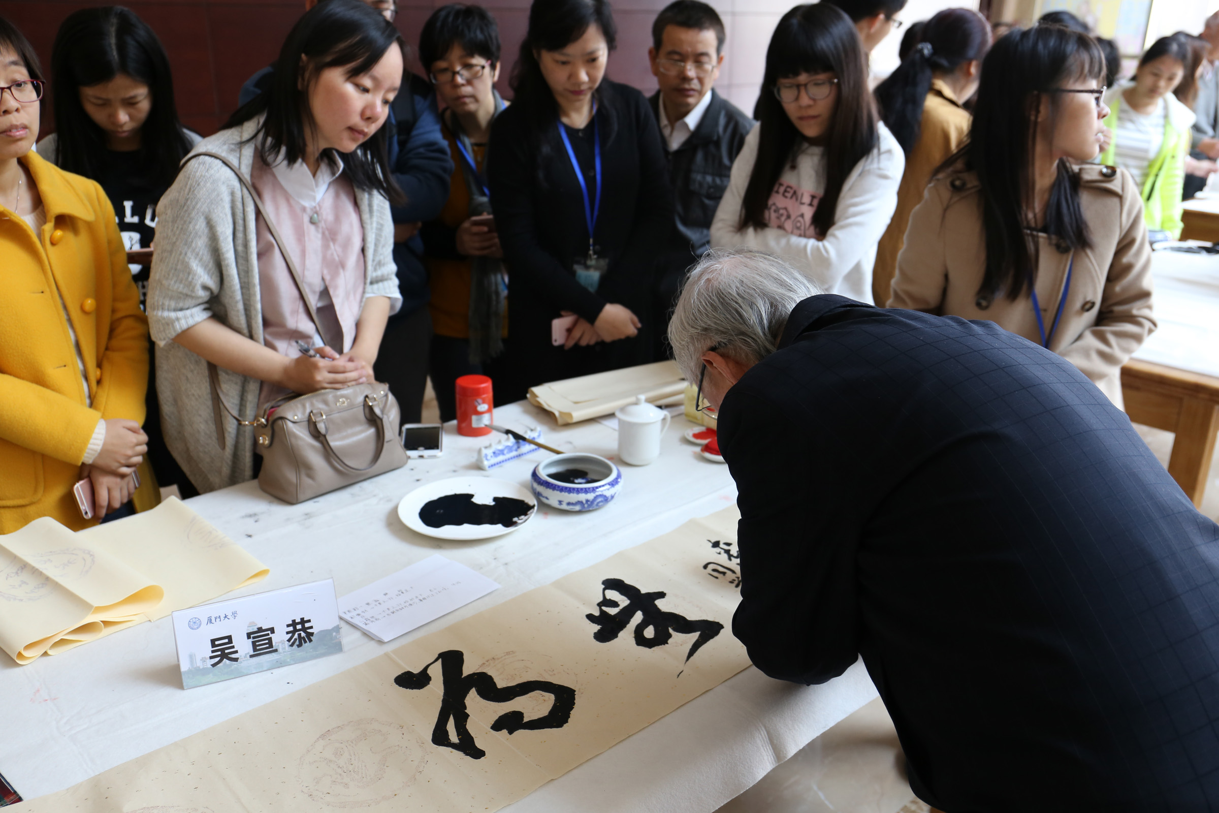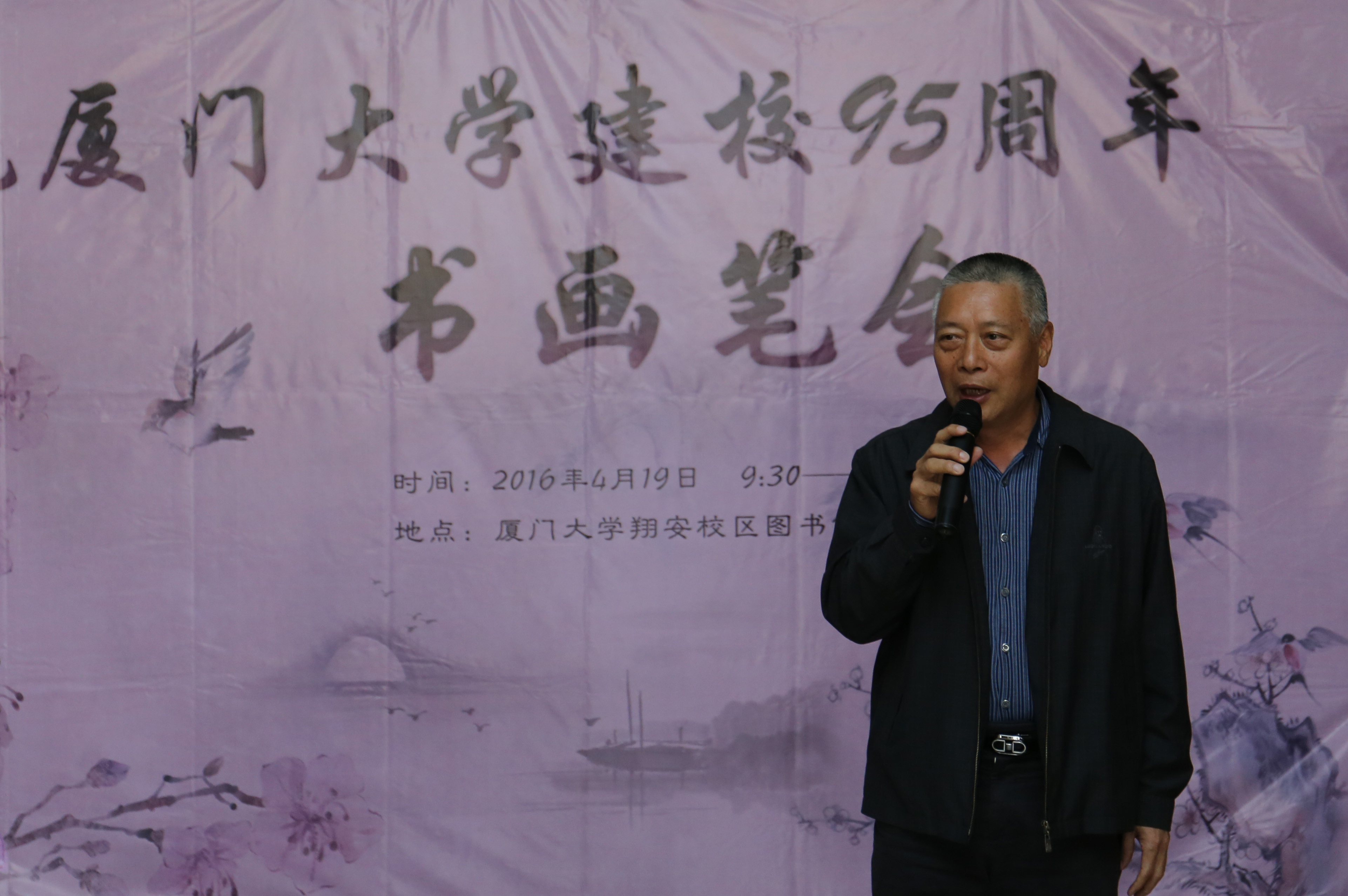 时值厦门大学建校95周年之际,为弘扬与传承中国传统书画艺术,厦门大学工会携厦门大学图书馆、厦门大学书画研究会于4月19日上午在翔安校区图书馆北厅举办了“中国梦 厦大情”庆祝建校95周年书画笔会。校长助理、翔安校区党工委书记兼管委会主任李初环,校工会副主席史虞龙,管委会办公室主任刘立荣和图书馆副馆长戴鹭涛及师生员工数百人参加了此次笔会活动。