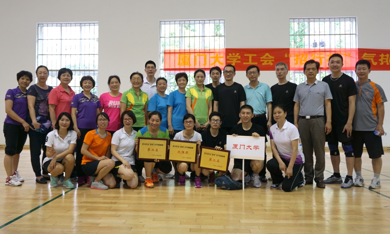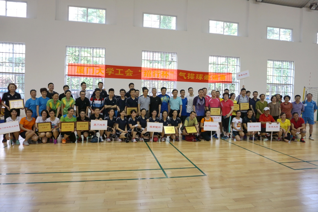 5月7日厦门大学工会“招行杯”气排球邀请赛在厦门大学风雨球馆举行,厦门大学、招商银行厦门分行、华侨大学、集美大学、厦门理工学院、厦门医学院、厦门市卫生系统、思明区科文卫体、厦门国税、思明区工会等10个单位的16支球队参赛。厦门大学工会常务副主席宋毅、招商银行厦门分行行长周启正致辞,校工会副主席史虞龙、秦红梅等观看比赛并为获奖代表队颁奖。