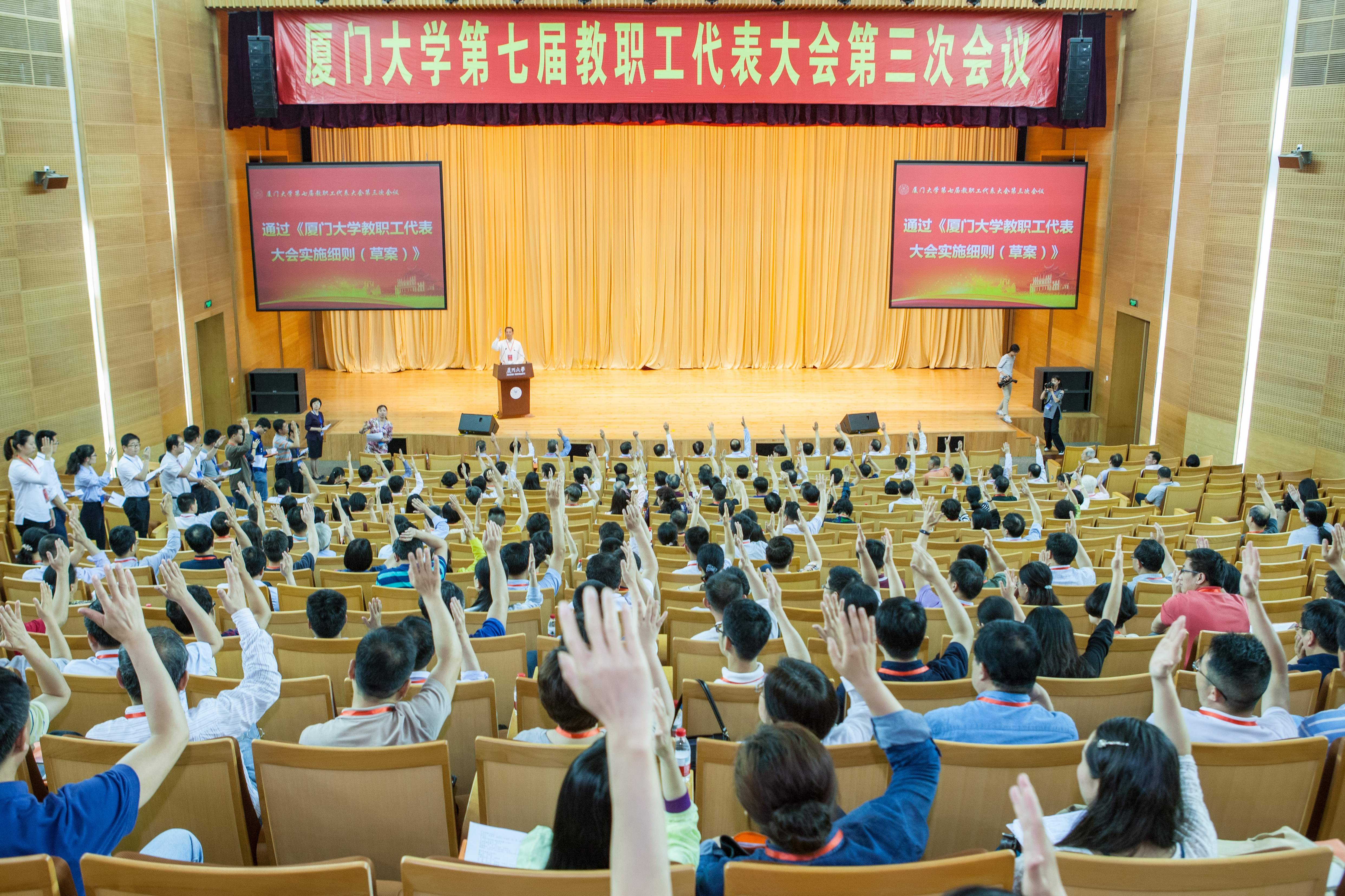 按照教代会相关规定,与会代表表决通过了《厦门大学教职工代表大会实施细则》和《厦门大学教职工绩效考核评价体系改革总体方案》。