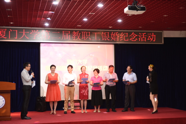 5月13日,厦门大学第二届教职工银婚纪念活动在自钦楼二楼多功能厅隆重举行。校党委副书记、纪委书记、校工会主席赖虹凯,校工会常务副主席宋毅、副主席李招淡、校工会副主席、妇委会副主任秦红梅,校宣传部副部长楼红英、校统战部副部长龙坚毅等领导应邀出席本次纪念活动。本次活动邀请到来自我校二十个单位的25对伉俪庆祝银婚。纪念活动由茹晓燕和熊剑龙共同主持。