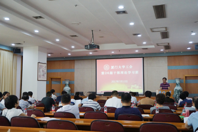 7月12日下午,厦门大学工会第26期干部理论学习班理论学习在颂恩楼220会议室召开。校工会委员、经审委员、部门工会主席和各委主任、各部部长以及全体专职工会干部参会。会议由校工会常务副主席宋毅主持。