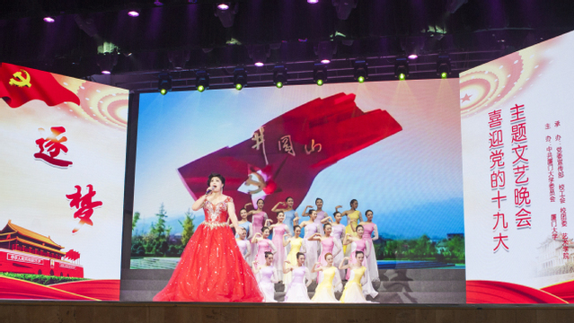 在党的十九大胜利召开前夕,厦大师生用一场形式丰富、内容精彩、覆盖面广的文艺晚会生动诠释着对党和国家的愿景。万水千山不忘来时路,师生们在歌曲、舞蹈与朗诵的时空对话中深切感受到了中国共产党砥砺奋进的伟岸历程,并将不忘初心、昂首前行,为中华民族伟大复兴的中国梦奉献力量,以优异的成绩迎接党的十九大胜利召开!