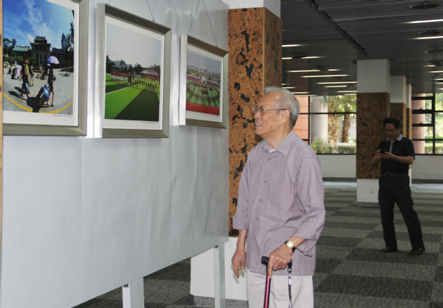 10月23日上午,厦门大学庆祝党的十九大胜利召开书画摄影展在思明校区科学艺术中心一楼展厅开幕。本次展览由校工会、离退休处、老年大学、书画研究会以及摄影协会联合举办。原校党委书记王豪杰,原校党委副书记、纪委书记、老年大学校长陈国凤,原纪委书记、书画研究会会长卞守耆,副校长詹心丽,中科院院士黄本立教授,校工会常务副主席宋毅、副主席李招淡,离退休处处长郑建华、副处长周一钦,书画研究会、摄影协会等主要负责人以及师生员工到场观看了展览。