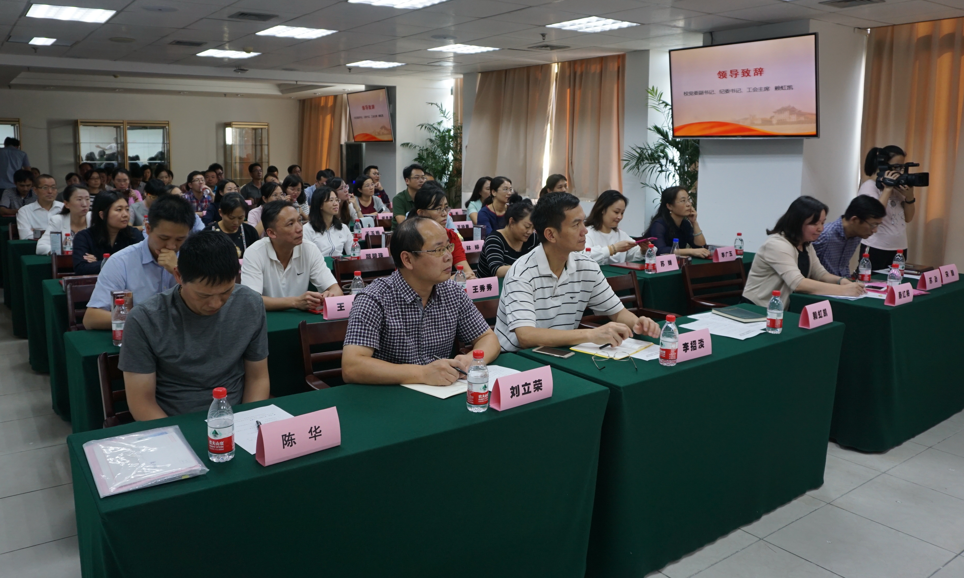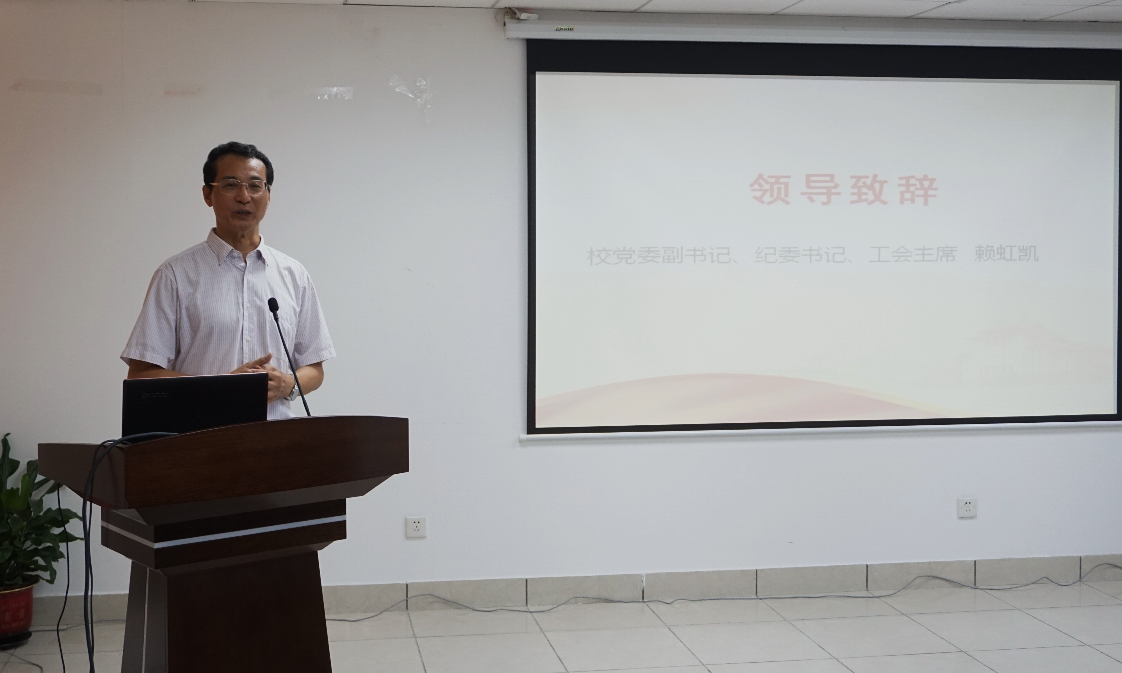 10月24日下午,校工会在颂恩楼1001会议室举办第26期工会干部理论学习班结业式暨宣传信息工作表彰会,校党委副书记、纪委书记、工会主席赖虹凯出席会议并讲话,校工会“两委”委员、各部门工会主席、受表彰先进个人等近70人参加会议。校工会常务副主席宋毅主持会议。
