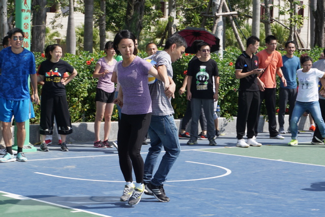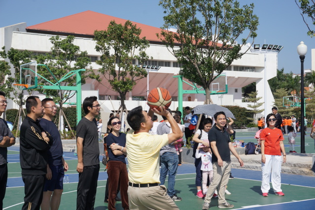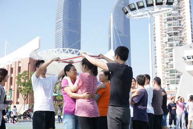 本年度教职工趣味运动会共设时空隧道、投篮、卓越圈、背靠背夹排球四个比赛项目,共有36个部门工会近千名教职工参加。