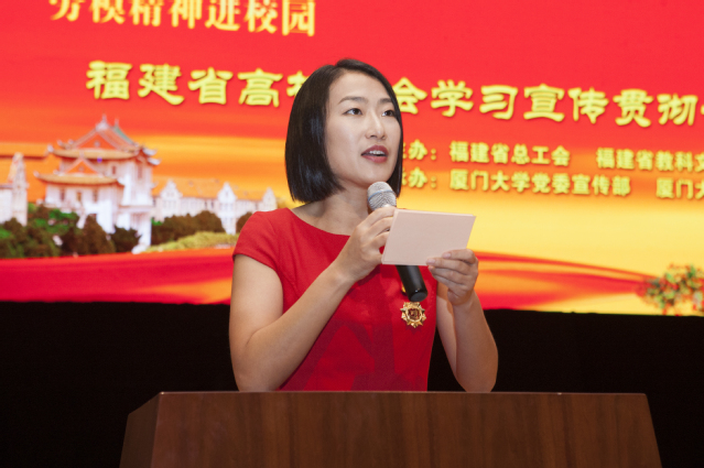福建省总工会党组书记、副主席丁文清,福建省总工会教科文卫体工会工委主任郭立新,工人日报社驻福建记者站站长肖玉宝,省总工会宣教部部长刘冰新,省总工会办公室主任陈雁,省教科文卫体工会工委调研员江发林、赵伦,以及兄弟高校工会负责人出席了本次活动。厦门大学党委副书记、纪委书记、工会主席赖虹凯出席活动并致辞。人文学院副教授、福建省“五一”劳动奖章获得者李莉主持了活动。
