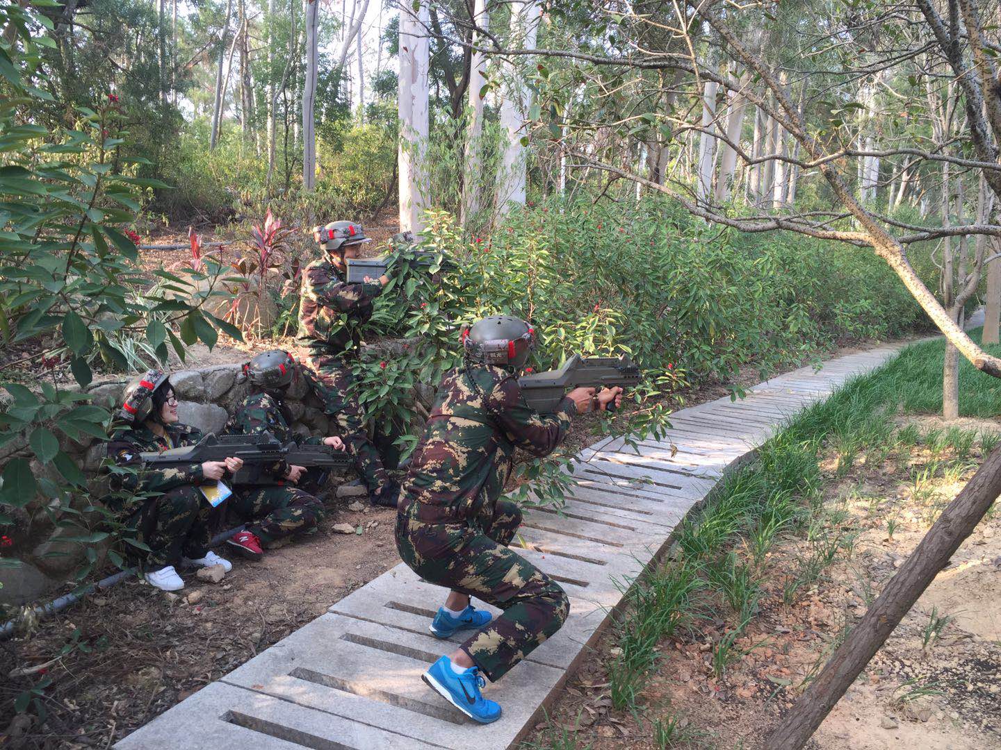 下午,稍作休整后,身着帅气迷彩服、手握仿真游戏枪,青年教职工们分为红蓝两大部队,整装出发开始下午的“战役”。经过“夺旗战役”、“人质解救战役”、“歼灭战役”,红蓝阵营分别制定各自的攻防战略,“友谊第一、比赛第二”,在体验快乐的同时,凝聚了团队力量,增进了沟通和交流。