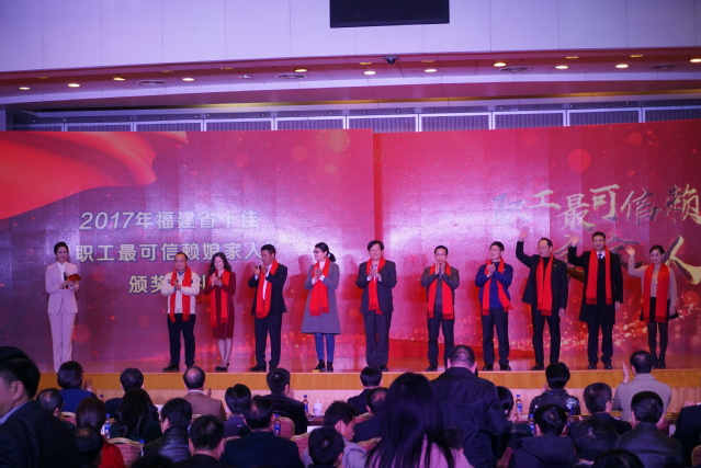 1月14日晚,2017年福建省十佳“职工最可信赖娘家人”颁奖典礼在福州市福建会堂隆重召开。省人大常委会副主任、省总工会主席张广敏、各设区市、平潭实验区总工会分管领导等出席本次颁奖典礼。我校法学院教授、校工会副主席、女工委主任蒋月出席并接受福建省十佳“职工最可信赖娘家人”荣誉表彰。