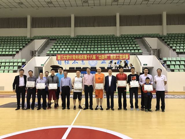 4月19日晚上,厦门大学明培体育馆内灯火通明、热闹非凡。经过近一个月竞争激烈的比赛,庆祝厦门大学建校97周年第18届“出版杯”教职工篮球赛终于迎来巅峰对决——冠军争夺战!大战在强势回归的图书信息档案部门工会和老牌强队建筑与土木工程学院部门工会之间展开,图书信息档案部门工会一路领先,最终以较大的优势战胜对手夺得冠军,建筑与土木工程学院屈居亚军,荣获第三至第八名的队伍依次是体育教学部、药学院、附属音乐学校、后勤集团、出版社、经济学院。