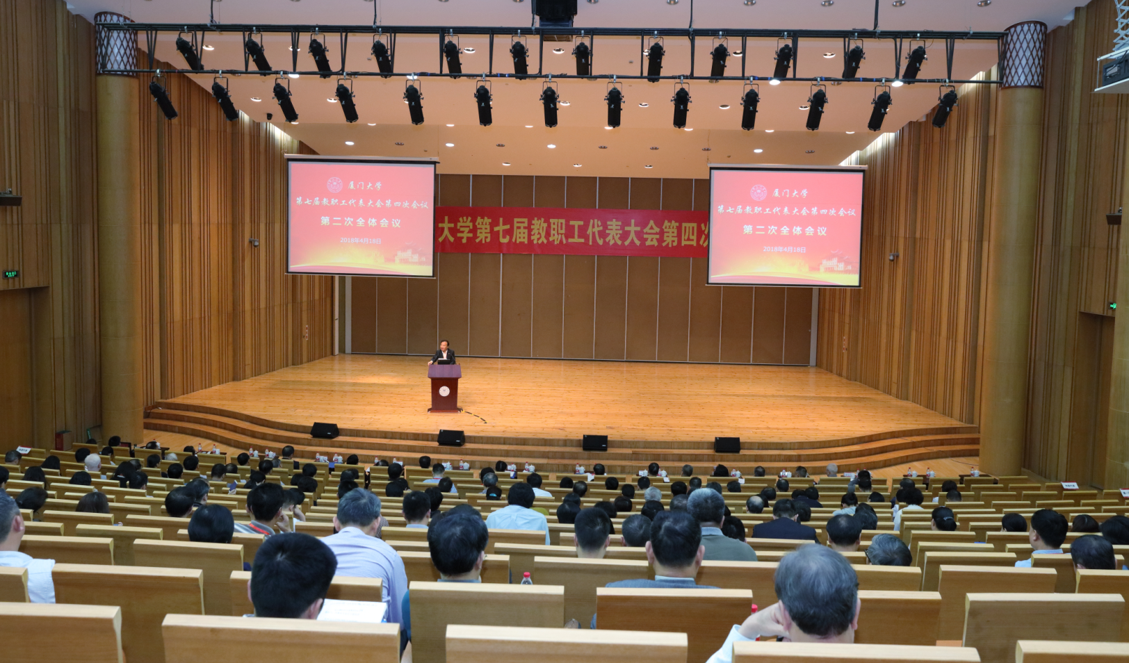 4月18日,我校第七届教职工代表大会第四次会议在科学艺术中心召开。大会听取、审议了厦门大学2017年工作总结报告、2018年工作计划要点、厦门大学2017年度财务预决算及2018年预算情况报告,通过了第七届教职工代表大会提案工作委员会和住房与物业管理民主监督委员会委员调整名单。校党委副书记、纪委书记赖虹凯,校工会常务副主席叶鹏飞分别主持会议。
