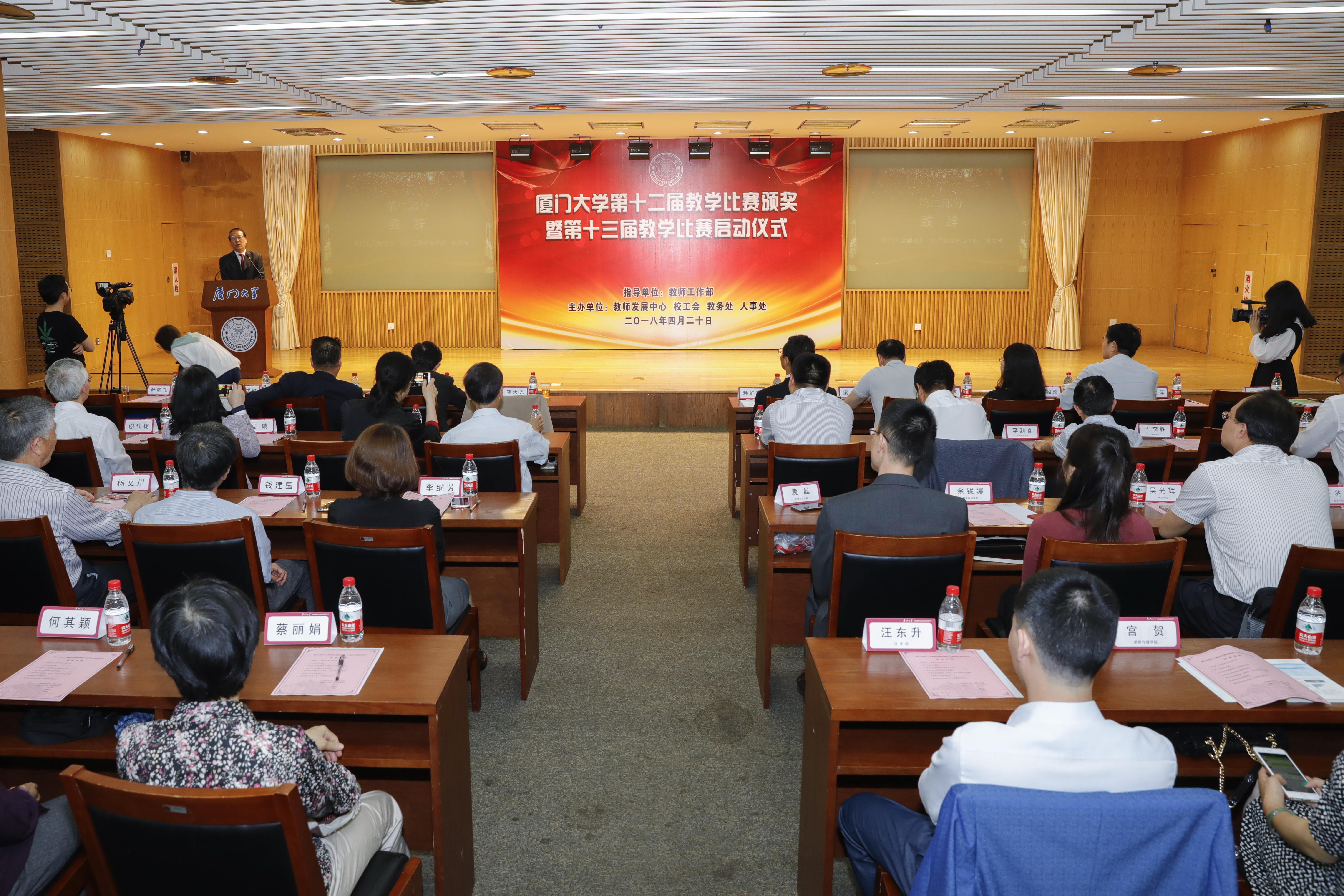 厦门大学第十二届教学比赛由教师工作部指导,教师发展中心、校工会、教务处、人事处联合举办。本次比赛规模大、层次高,参加的学院、参赛人数均为历届最多。比赛的突出特点是内容丰富,整体水平高。课程不仅有基础课、公共理论课、专业选修课,还有全英文教学、通识教育课、实验课,尤其是翻转课堂比赛,课堂设计各具特色,气氛活跃,较好地体现了以学生为主的教学改革成效。