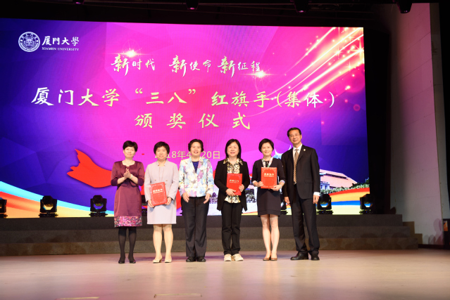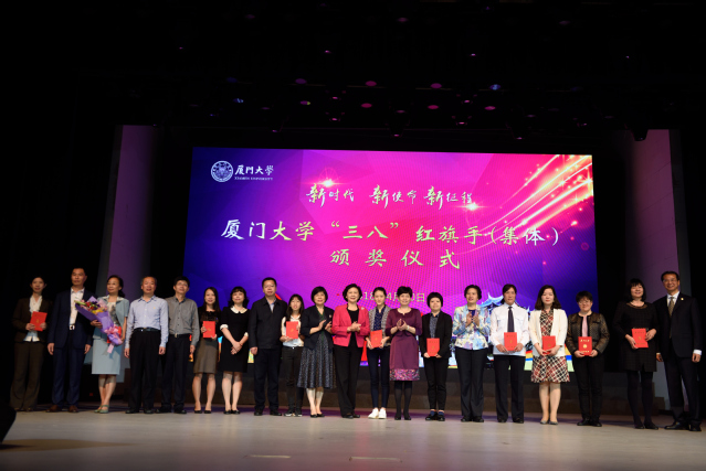 过去的两年,我校女教职工兢兢业业,刻苦奉献,她们勇挑重担、敢为人先,不断取得丰硕成果。今年三月,为表彰全校不同岗位上涌现出的优秀女性,经过各基层党组织推荐、学校初审和终审,最终评出厦门大学国家级化学实验教学示范中心、卫生技术评估福建省高校重点实验室、国际合作与交流处/台港澳事务办公室3个三八红旗集体和牛霖琳、叶本兰、朱志、宋文艳、张瑶、范丽娟、郑丽、侯莎、徐延辉、黄联芬10位三八红旗手。