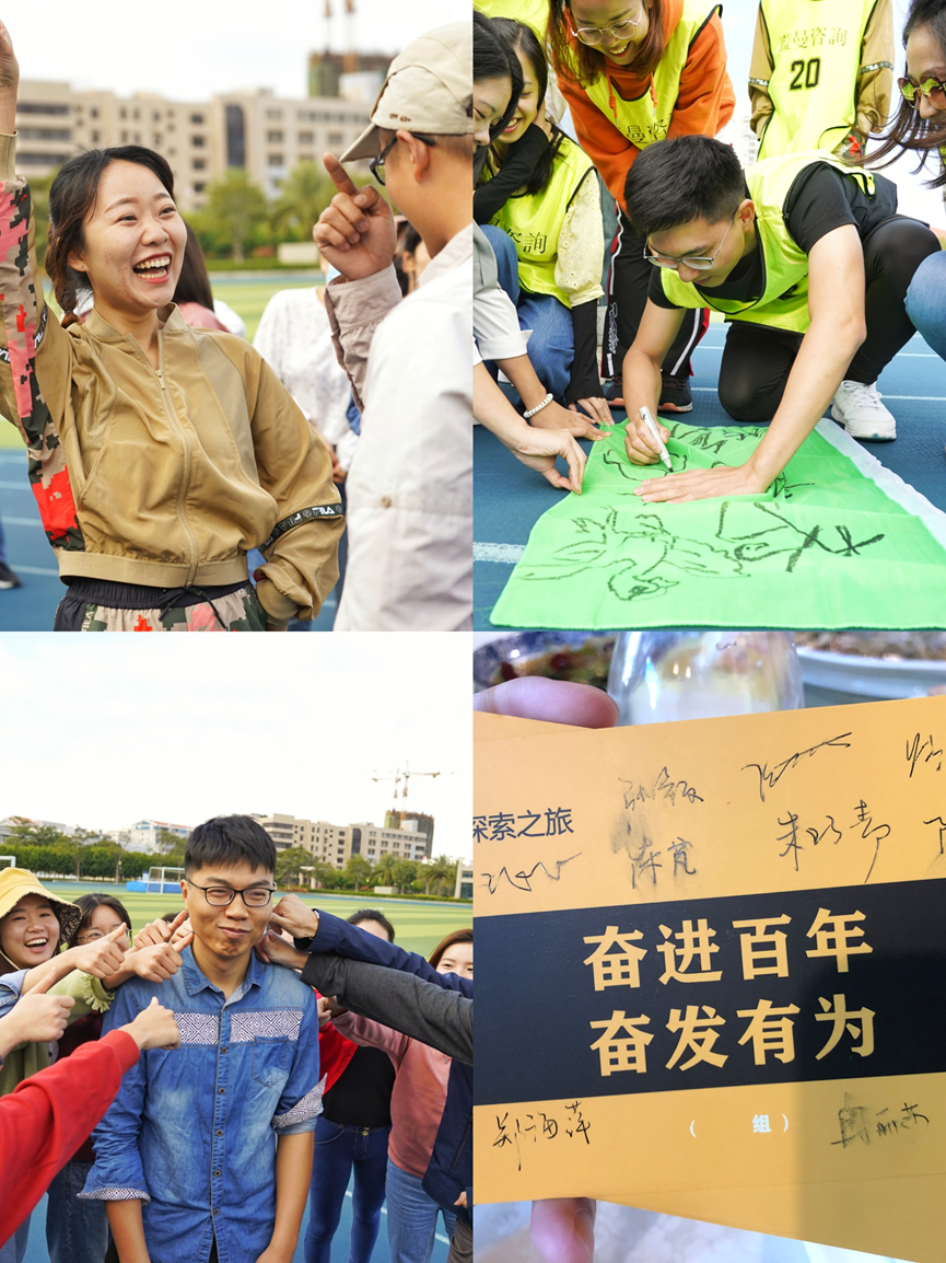 上午,参加活动的青年教职工们在思明校区演武场签到集合,在教练的组织下迅速投入破冰活动中。“舞动全场”开场热身,“缘定胜天”趣味分组,“缘来是你”快速认识小分队成员。“猜猜我是谁”、“一加一家”趣味团建让各队的伙伴们渐渐消除陌生感,彼此之间拉近距离,在规定时间内完成合作分工和团队口号。