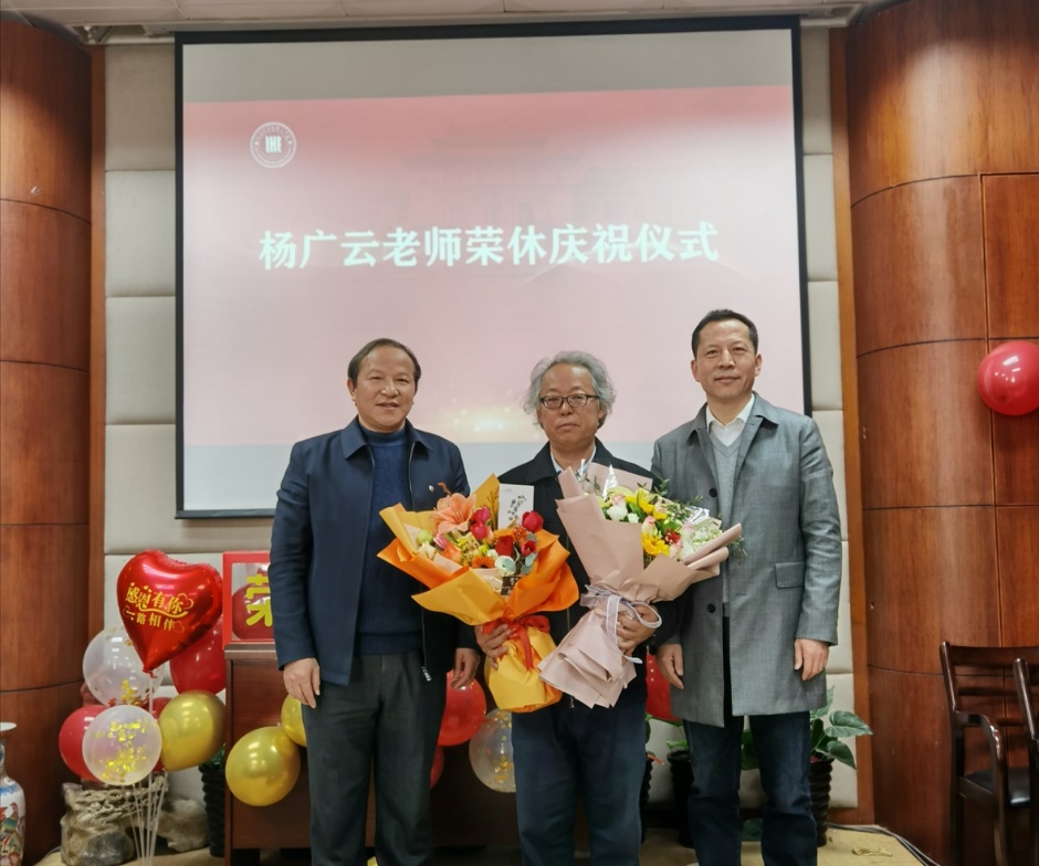 研究院教师代表和研究生代表分别向杨老师敬献鲜花,以表达对同事、恩师的敬意与感恩,祝福杨老师退休生活丰富多彩、健康长寿。