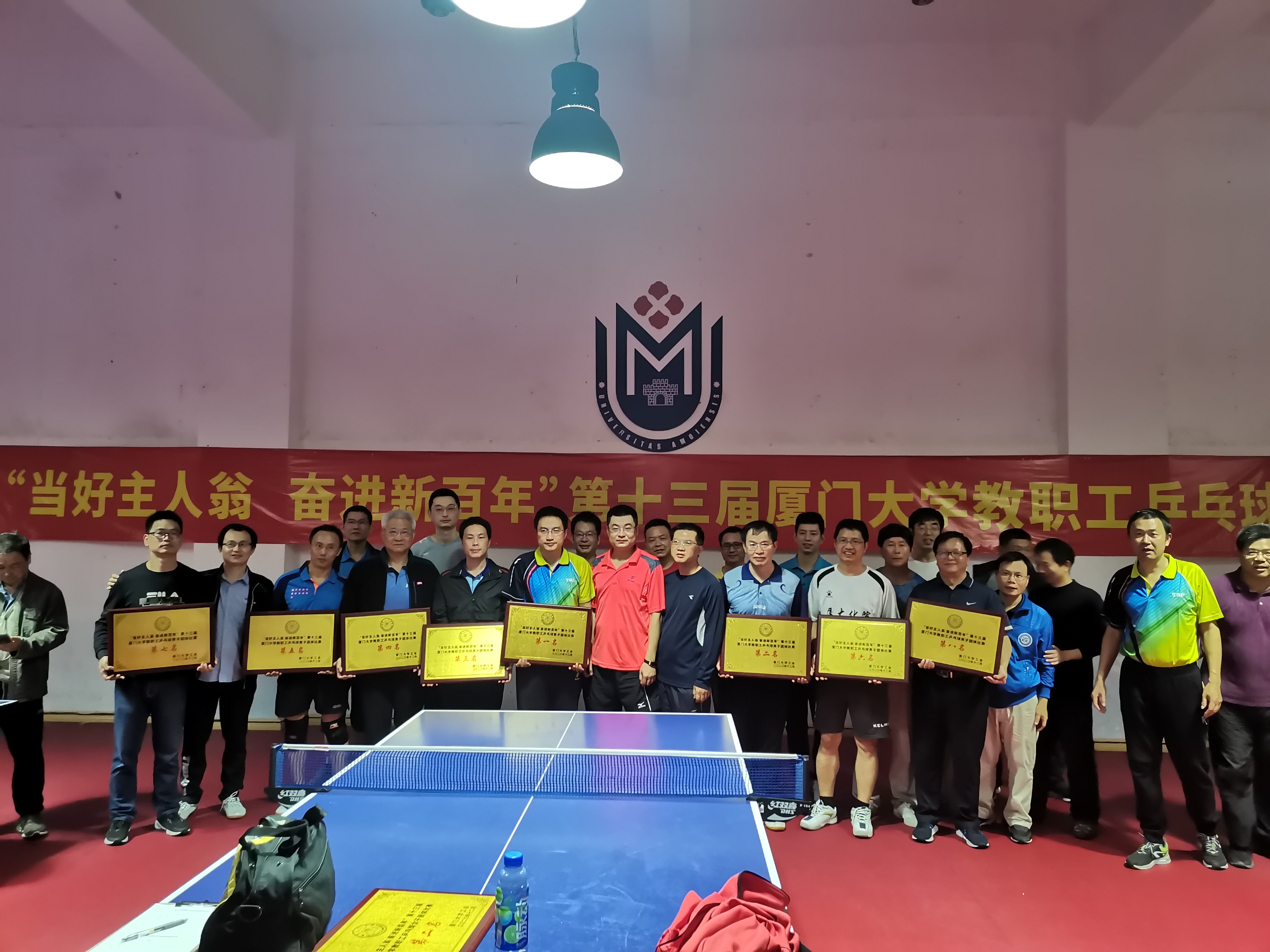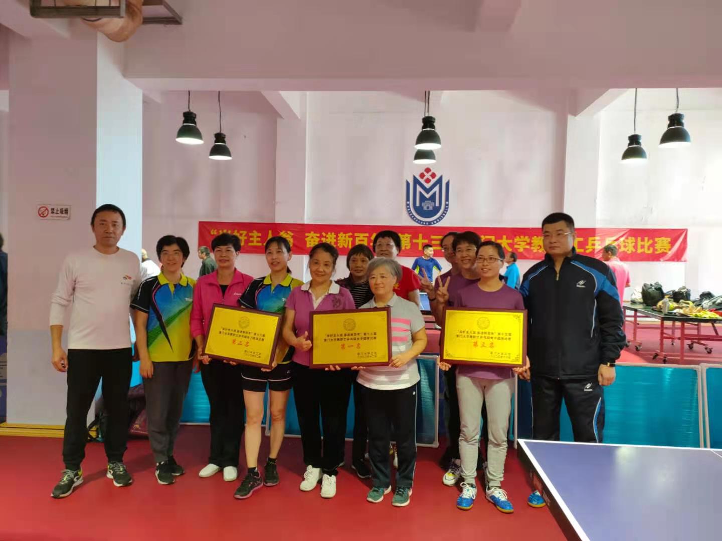 2020年12月26日,由校工会主办的传统体育赛事——“当好主人翁 奋进新百年”第十三届“乒协杯”厦门大学教职工乒乓球男女团体比赛在思明校区王清明游泳馆落下帷幕。今年的厦门大学教职工乒乓球男女团体比赛共有15支男队、5支女队的100多名教职工运动员参与角逐,许多学院、机关部处的领导、教授都亲自披挂上阵,尽管比赛都非常激烈,但波澜不惊,强弱格局基本不变,但一些代表队取得了突破。