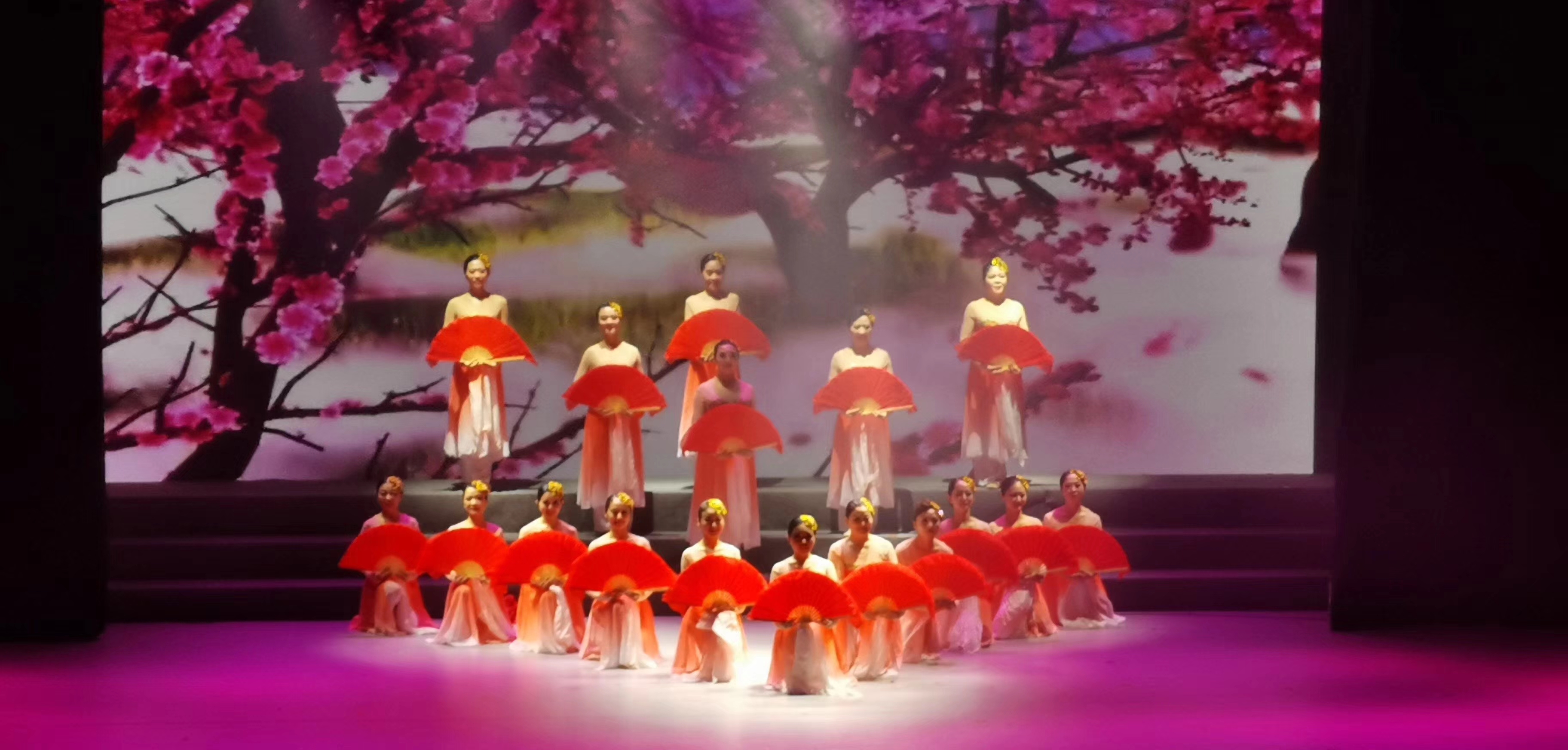 中国古典舞经典剧目《百花争妍》是把中国戏曲水袖时尚化、大众化、舞蹈化的剧目。我校教职工舞蹈队的十几位舞蹈演员们通过整齐、协调的摇、抛、甩、收、翻等耍水袖的动作,配合刚柔相济的音乐和酣畅淋漓、水到渠成的情感,硬是将手上的水袖耍成了一幅“蝴蝶翻飞、鲜花盛开、争奇斗妍、五彩缤纷的《百花争妍》图”。这既能表现出春的来到和盎然、花的盛开和炫丽,又能透过舞蹈展现出我们的社会主义祖国繁荣、富强、团结、生机勃勃的景象!