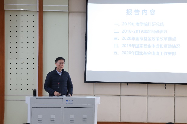 在雄壮的国歌声中,大会拉开了序幕。在上午的工作报告会中,吴国瑛作了“学习贯彻中共十九届四中全会精神”的报告,陈忠作了“学院2019年工作总结、2020年工作计划和学院2019年度财务收支与2020预算”的报告,董俊作了“加快学院一流本科专业的建设”的报告,张保平作了“牢记使命,搞好平台建设,促进学院发展”的报告。报告主题鲜明,内容丰富,干货满满,既有总结反思,又有建议措施,与会教职员工反响热烈。