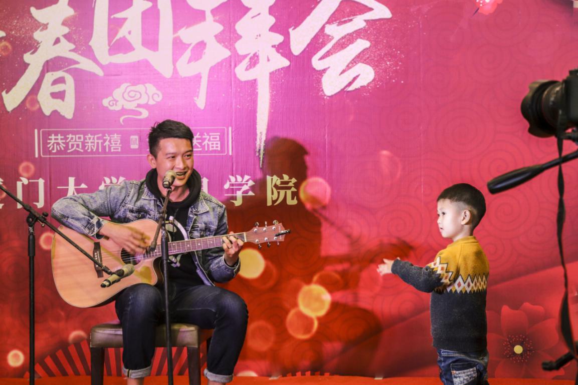 随后,由方爱珠、林世明、曾奇斌老师带来的“太极剑+书法”表演《鸿雁》,为我们展现了“左手写代码,右手练书法,埋头做项目,仗剑走天涯”的信息风采。由刘思聪、郑晖阁老师带来的吉他弹唱《同桌的你》,带领大家回首往昔,以过往岁月励今朝之志。由赵江声老师和我院教职工合唱团指导老师、艺术学院研究生杨舒静联袂演唱《为了谁》,重温奋不顾身的英雄精神,感人肺腑的旋律引领大家不忘初心、牢记使命。由杨律青老师带来的歌曲《北国之春》,唱响新春的盎然,尽抒新春的希望。而由熊剑龙老师带来的歌曲《加油、中国》融合了小我与大我,既彰显大国本色,又巧现新春祝福,精彩的演出赢得在场全体教职工的热烈掌声。