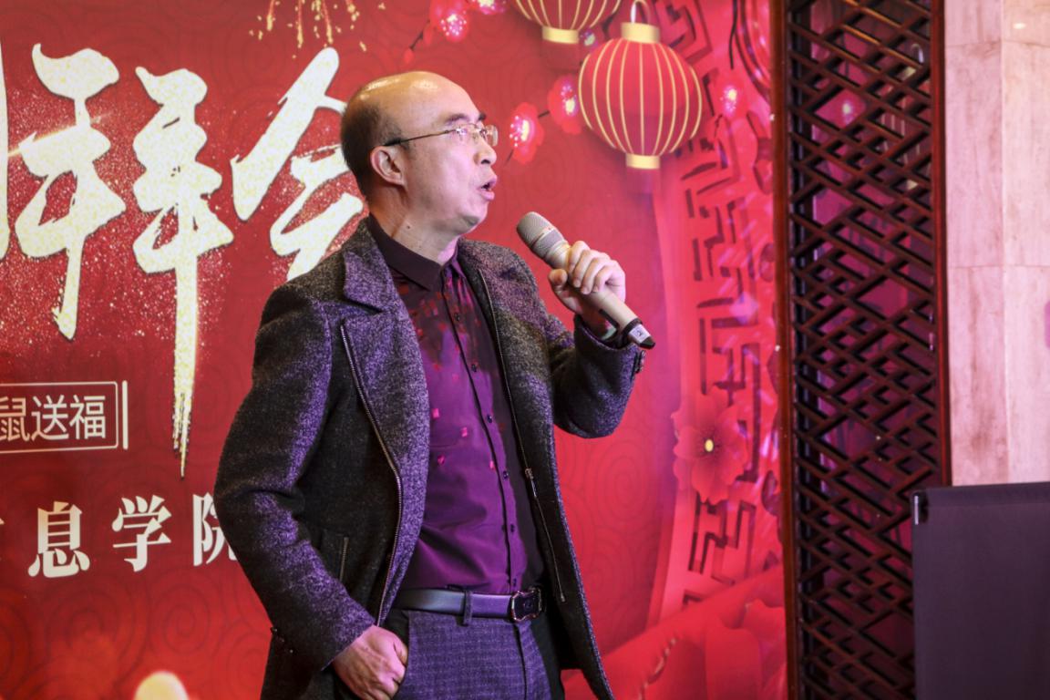 团拜会伊始,信息学院党委书记刘弢与在座全体教职工分享了信息学院2019年建院至今全年的工作建设与成就,在高度肯定2019年全年工作任务部署情,同时,也寄寓了对2020年的祝福与期望。随后,刘弢书记向大家介绍了2019年新入职的教师,包括沈志荣、吴荣鑫,孙晓帅,万磊,张声传,黄晨曦,陈胤燃,李辉,卢杨,戴海波老师,同时主持工作的王程副院长也代表学院,对今年正式退休的两位老教师周昌乐、刘丽致以了诚挚的祝福和感谢!