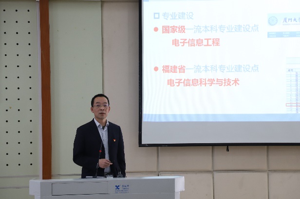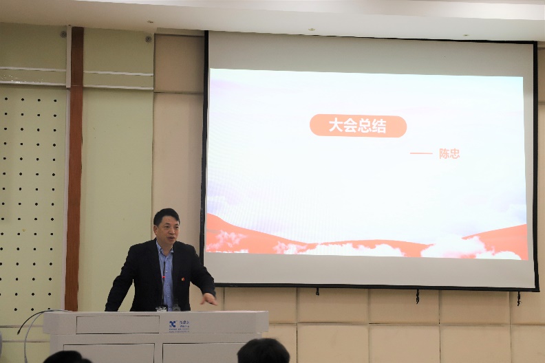 最后,陈忠发表总结讲话。他回顾了学院2019年的工作成果,提出了2020年的工作目标,并号召学院教职员工要坚持立德树人,发扬艰苦奋斗,传承百年厦大精神,在厦门大学“双一流”建设的征程上做出电子学院新的时代贡献。