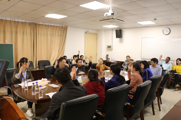 在雄壮的国歌声中,大会拉开了序幕。在上午的工作报告会中,吴国瑛作了“学习贯彻中共十九届四中全会精神”的报告,陈忠作了“学院2019年工作总结、2020年工作计划和学院2019年度财务收支与2020预算”的报告,董俊作了“加快学院一流本科专业的建设”的报告,张保平作了“牢记使命,搞好平台建设,促进学院发展”的报告。报告主题鲜明,内容丰富,干货满满,既有总结反思,又有建议措施,与会教职员工反响热烈。