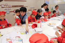 表演之后,小朋友们又变成小画家,一边画一边思索着下一步该怎样构图,为爸爸打造世上唯一的手工彩绘蛋糕盒。