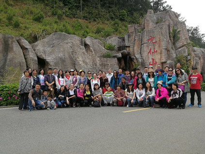 下午大家又继续游览了风景秀丽的九仙山。有着“中土蓬莱第一山”美称的九仙山,是一座集秀美风光、宗教圣地和文物古迹于一山的旅游胜地。景区奇岩兀立,万木竞秀,蕴藏着丰富的文物,以始建于唐开元四年的千年古刹灵鹫岩最为闻名,大家陶醉于九仙山得天独厚的的自然景观和悠久的历史文化,纷纷驻足拍照留念。