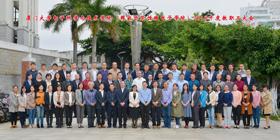 3月29日下午,电子科学与技术学院(国家示范性微电子学院)2018年度教职工大会在海韵教学楼504报告厅隆重召开。院党委书记吴国瑛、主持工作副院长陈忠、副院长董俊、副院长张保平、院党委副书记方银水、院党委副书记唐拥华、全院教职工及退休教师代表参加会议。会议由院工会主席沈桂平主持。