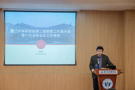 3月27日上午,药学院在426报告厅召开第二届教职工代表大会第一次会议。会议听取并审议了《药学院2018年学院工作总结和2019年学院工作计划报告》《药学院财务工作报告》。校工会副主席秦红梅,药学院党委书记陈怀锋,院长张晓坤,党委副书记陈夷、丁昌利,副院长吴振、曾锦章,工会主席朱铉以及全体教职工参加会议。会议两个阶段分别由丁昌利、朱铉主持。