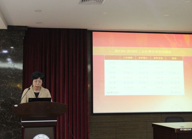 工会委员马春香同志代表本届工会委员会作经费收支情况说明,对2013年-2018年间工会各项经费收支进行了细致的梳理。