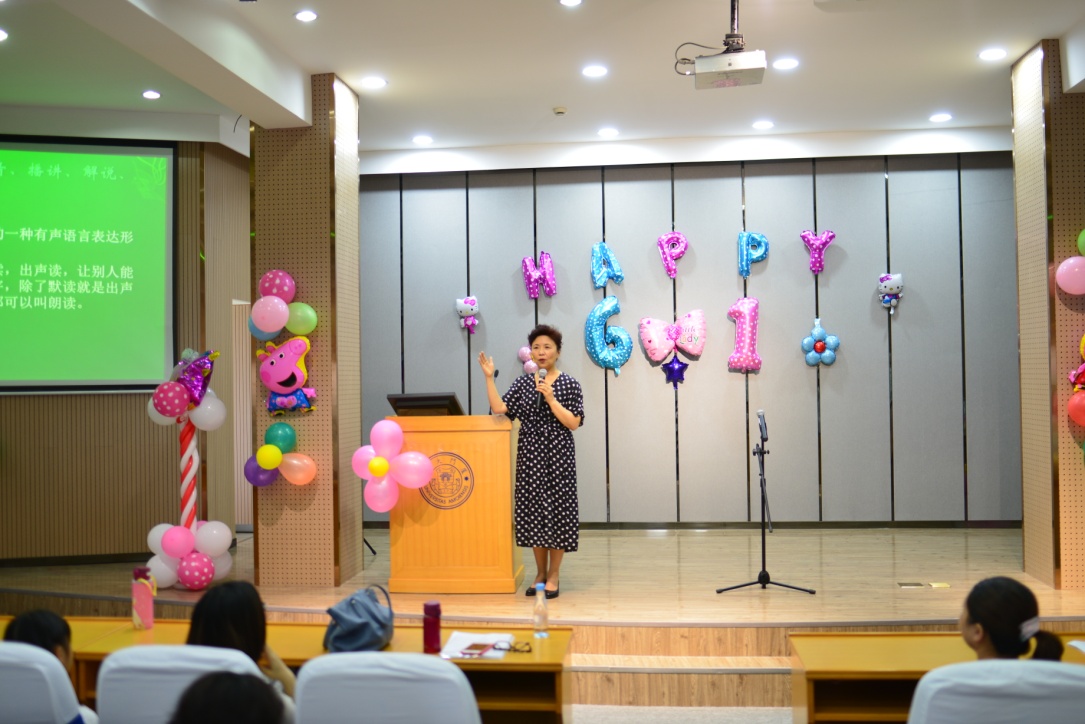 早上9:30,伴随着欢快的音乐,活动正式开始。在小朋友登台朗诵之前,图信档部门工会特别邀请了厦门大学学报的何洁老师,为小朋友们讲授朗诵的基本知识和实用技巧。何老师深入浅出,理论联系实际,通过具体的朗诵片段把知识和技巧展示出来,家长也和小朋友们一起聆听,认真学习。