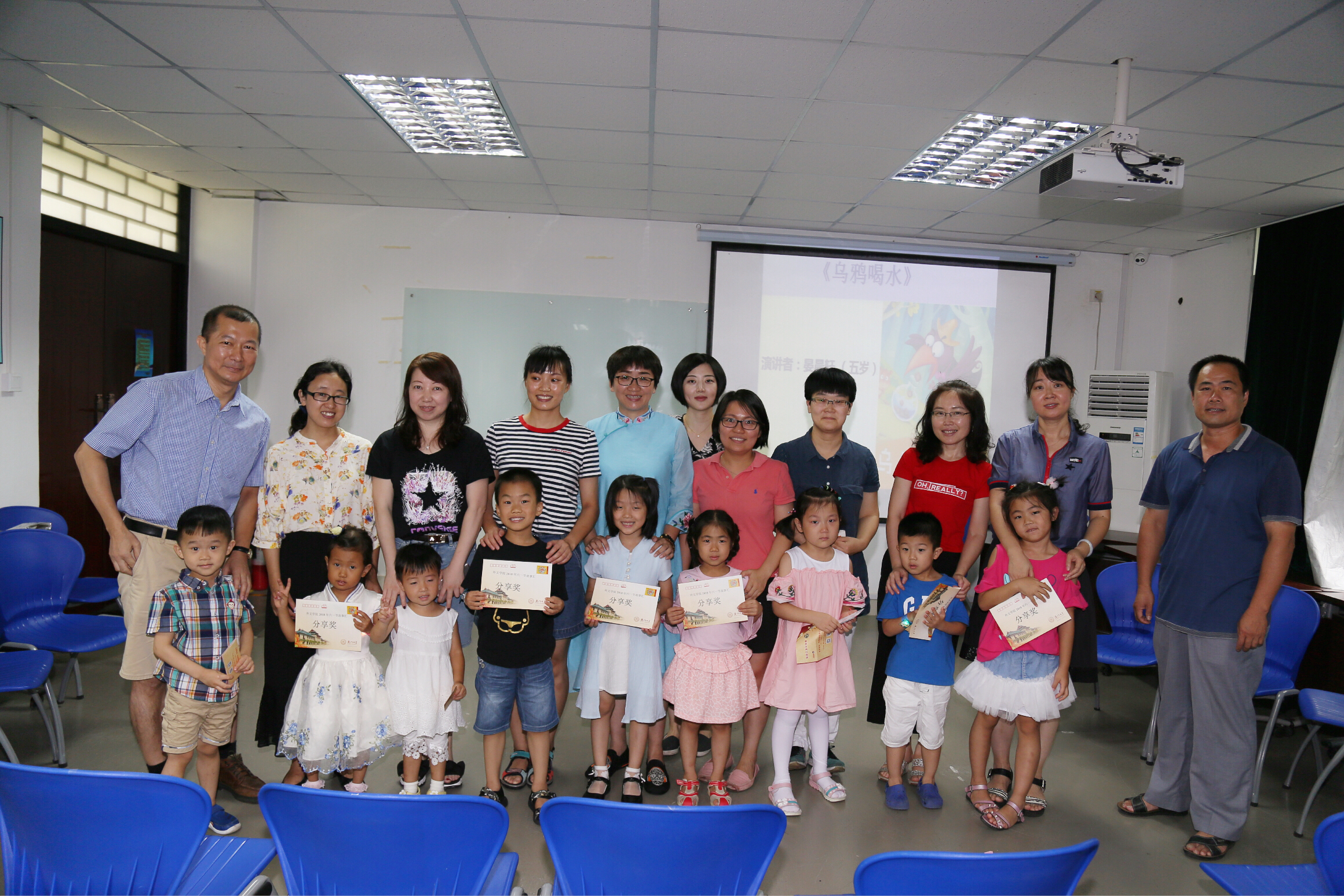 由厦门大学外文学院工会主办的“庆六一之欢乐故事汇”活动于6月10日在学院基金楼101教室成功举办。该活动是在学院工会主席郑岗峰老师的组织和指导下,经过工会委员们的多次讨论而成形的,旨在为外文职工的子女们搭建一个交流互动的平台,也同时锻炼孩子们的表达能力与勇气。活动由工会委员叶塑主持,以讲述故事为主要形式,所有报名参加的小朋友依次上台分享自己喜爱的故事,并在讲演结束后接受来自其他小朋友的提问。活动过程中,各位故事分享者展现出了超乎想象的表达能力与记忆力,他们丰富的词汇量、生动的表情和声音,加上大方稳健的台风,令在场的大人们不停赞叹。在讲演的间隙,还有几位前来观看的小朋友主动提出为大家即兴表演,同时,工会为小朋友和家长们准备了零食和饮料,整个活动现场笼罩在轻松愉快的氛围之中。最后,由郑岗峰主席为小朋友们颁发了奖品。