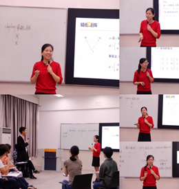 参加英语教学比赛的余铌娜老师,现场抽到的教学片段是《System of Linear Equations and Matrices》,单看她的ppt ,好像平淡无奇,可是一听她讲课,那真是惊艳,教室里的学生和评委老师都成了她的学生,流利的英文,优美的姿态,清晰的逻辑,恰到好处的板书,ppt上的方程和抽象的公式符号好像都鲜活了起来,连非数学专业的评委老师也频频点头,不但听懂了数学课而且还听得很享受,真是太难得了。