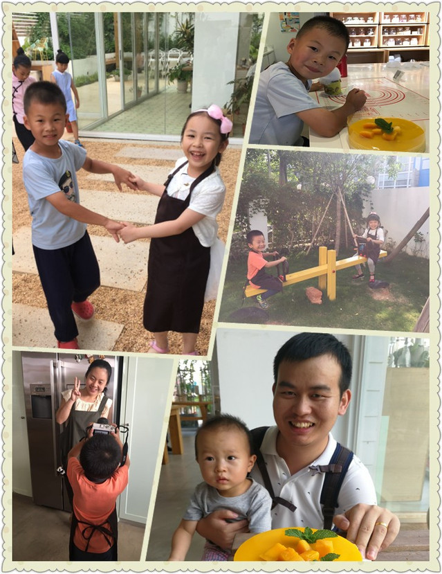 休闲放松的室内环境、高大明亮的全开放厨房让人身心愉悦。大家都不约而同的选择了高阶成品:芒果慕斯。对大人都不简单,对孩子们更是个挑战。从在前台签到开始的那一刻,孩子们就迫不及待的要捋起袖子大干一场啦!洗干净小手,按照烘焙指南的每个步骤,领取物料、工具、称重、搅拌… 想做成完美的慕斯,每个细节都不能疏忽。孩子们都在助理老师的指导下,小心又兴奋。等待的过程漫长又充满了期待,“饼底可以拿出来了吗?”“慕斯可以拿出来了吗?”孩子们期待自己动手的作品早点成型。当一个个可爱、美味的慕斯成品成功登场时,孩子们别提多高兴!
