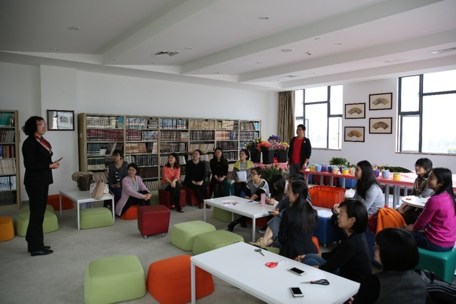 翔安校区德旺图书馆二楼梦享屋书香宜人,让人身心愉悦。含苞待放、娇嫩欲滴的玫瑰、洋桔梗、紫罗兰等新鲜花材透着生机。基地党总支书记范丽老师在开场中寄语基地全体女教职工,在繁忙的工作之余,能够拥抱自然,做更美的自己。