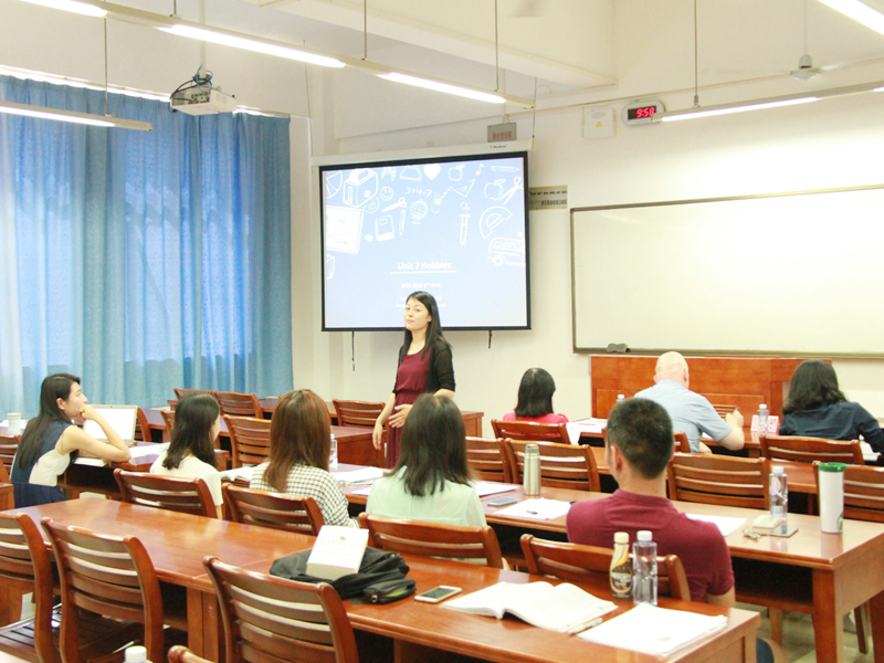 唯独二号楼的B楼内却热闹非凡。英语、日语、汉语等各种语言的讲课声,热情洋溢地从不同的教室里传出来,与夏日的阳光交织在一起,气氛格外热烈。在这里,海外教育学院/国际学院近40位青年教师正在进行着激烈的教学比赛。