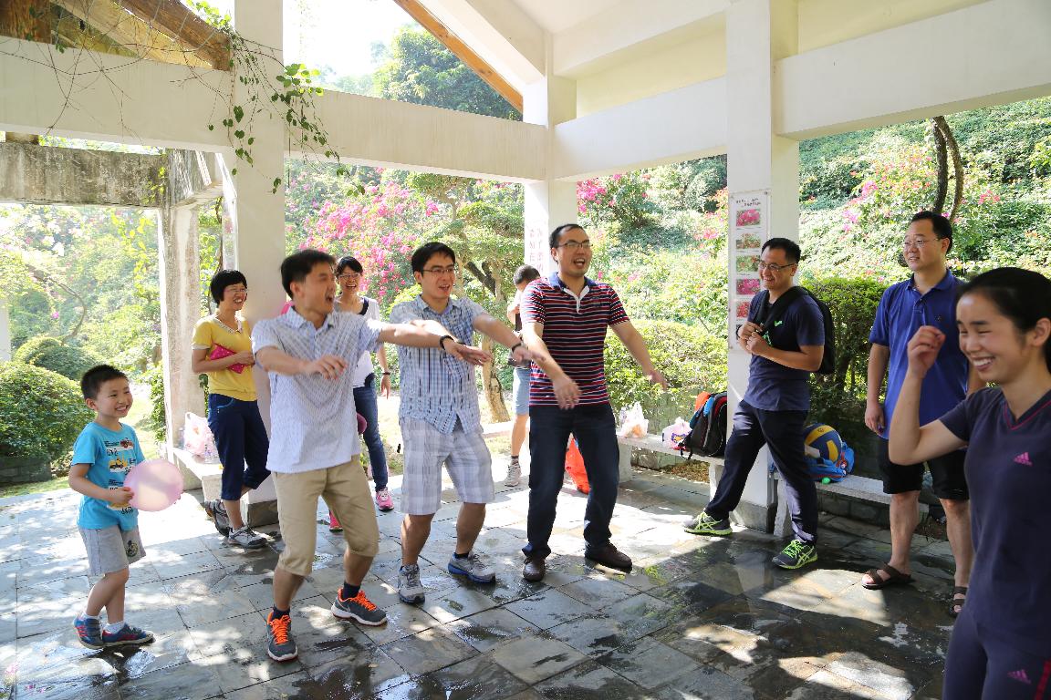 沿途风景处处美, 带着愉快的心情,你就能看见风儿悄悄的经过,听见花儿开怀大笑。一到三角梅漫山绽放的梅海岭,大家停不住的就是忙拍照,拍下的美景足以刷爆朋友圈,满屏的三角梅在骄阳、蓝天以及绿叶映衬下更显艳丽动人。置身花海里,我们被美愉悦,“待到山花烂漫时,她在丛中笑”。天气稍热,树荫下,凉亭里,大家歇息片刻,享受了水果和零食的美味之后,便是娱乐小游戏时间。张明智书记和伍火熊主席带领大家,玩起了萝卜蹲、背靠背夹气球、乒乓球接力等趣味活动,两人合作,团队协同,欢呼声,赞美声交织在一起,感动着每一个人。团队训练,可以教会我们如何在压力和困难面前调整自已的心态,勇于尝试,挑战自我,战胜自我。趣味的活动,自然是玩得很high,在轻松愉快的氛围中,时间总在不知不觉流逝,大家不舍得结束.
