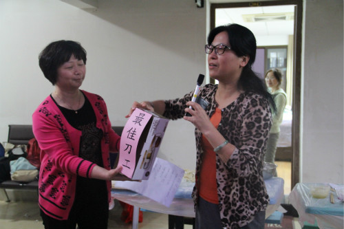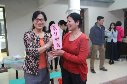 下午六点,经过大众评审们的认真品鉴,大家翘首以待的“神秘大奖”终于一一揭晓:陈端端、胡佳、张淑芬三位老师各自以色、香、味俱全的菜品摘得外文学院新一届“厨神”的桂冠;法语系教师团队以富有创意与浪漫气息的五彩水饺荣获“最佳创意奖”;陈志伟老师以一道颇见刀工的梅菜扣肉荣获“最佳刀工奖”;林丽芳老师以精巧、色形俱佳的海鲜沙拉荣获“最佳摆盘奖”;洪梅英老师以吸人眼球、外酥里嫩的海蛎炸荣获“最佳视觉奖”;刘夏老师以充满浓郁西域风味的手抓羊肉饭、外教Donald以地道的芝士蛋糕并列获得“最鲜料理奖”;肖纷老师以醇香可口、清新沁脾的杨枝甘露荣获“最佳味觉奖”。校、院领导为获奖教师颁发了锅、碗、瓢、勺等别具一格的纪念品,将活动现场的欢乐气氛再次推向了高潮。