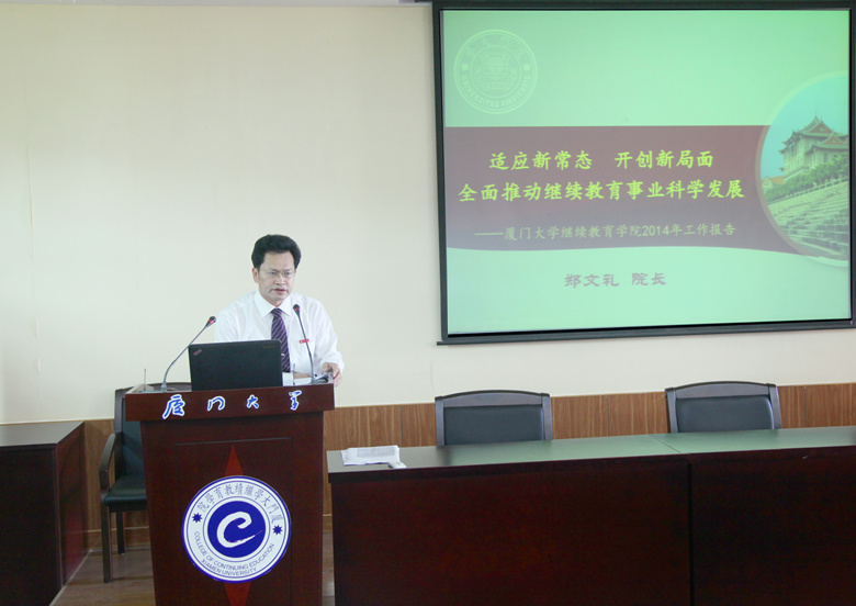 会上,郑文礼院长作了题为《适应新常态,开创新局面,全面推动继续教育事业科学发展》的工作报告及2014年财务收支情况报告。他指出,在新常态下,学院围绕规范管理、提高质量、内涵发展、深化改革的工作重点,稳步发展学历继续教育、大力发展非学历继续教育,认真办好职工夜校,认真履行服务社会职能,努力推动我校继续教育规范、有序、健康发展。报告回顾了过去一年学院各方面工作情况,指出学院发展存在的问题,提出2015年度学院工作的总体思路、工作目标和具体举措。
