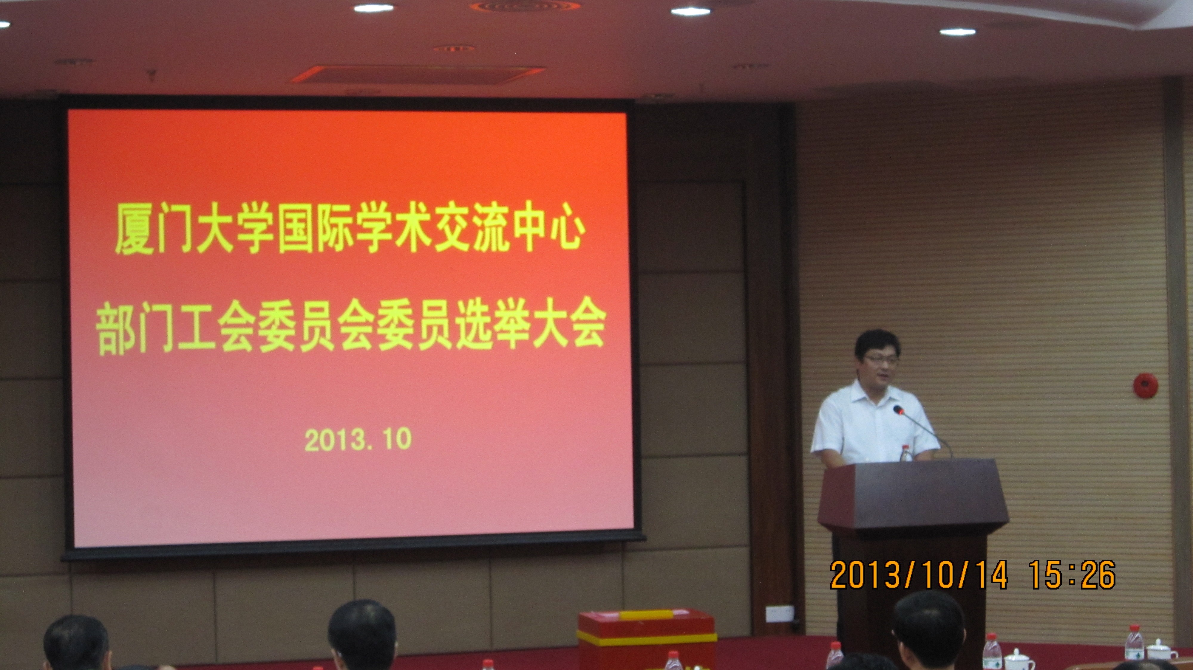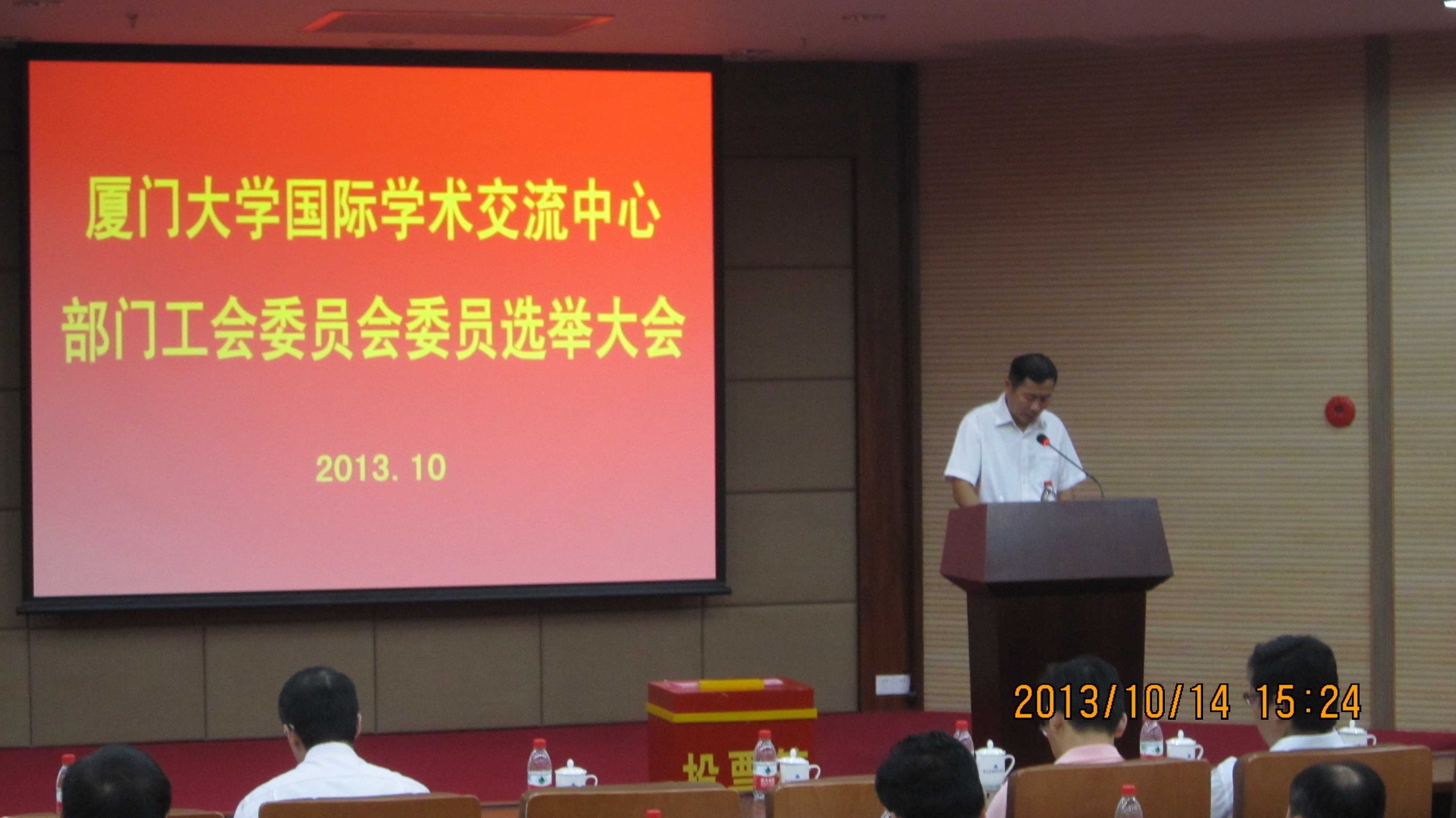 2013年10月14日下午,国际学术交流中心在克立楼三楼报告厅召开首届部门工会委员会委员选举大会。中心领导及各部门员工代表出席了会议,校工会常务副主席宋毅莅临指导。会议由朱子申总经理主持。