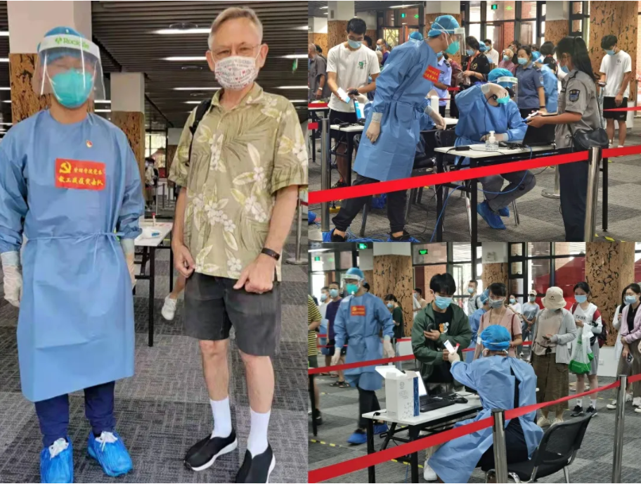 管理学院党委倡议基层党组织和师生党员发挥战斗堡垒和先锋模范作用,第一时间成立了一支28人的“管理学院教工抗疫突击队”,准备随时参与到学校全员核酸检测的志愿服务中。管理学院前来参加核酸检测的潘维廉教授还说:“下一次,我也要参与到核酸检测的志愿服务中来!”