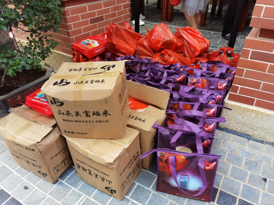 为驻守教职工领取分发中秋国庆福利,感受工会大家庭的温暖