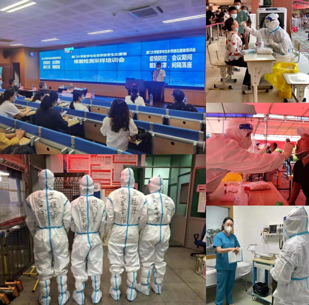 医学院教职员工不忘医者初心,冲锋在抗疫防控一线。战疫的号角一吹响,医学院联合附属翔安医院,开展对核酸检测人员的感染防控、技术操作培训达1000多人次,用行动诠释不忘医者初心、践行医者使命的初心。