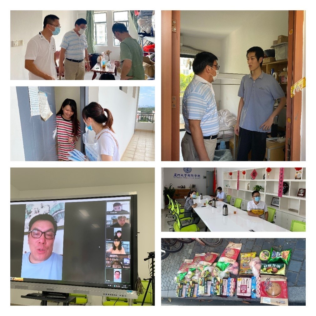 国际学院领导班子第一时间带头深入一线、靠前指挥,聚焦学院师生学习生活需求,深入教职工家庭、学生宿舍,为教职工、学生送去关心与温暖,带领全院师生不折不扣落实疫情防控各项工作,为织密扎牢校园疫情防控网贡献力量。