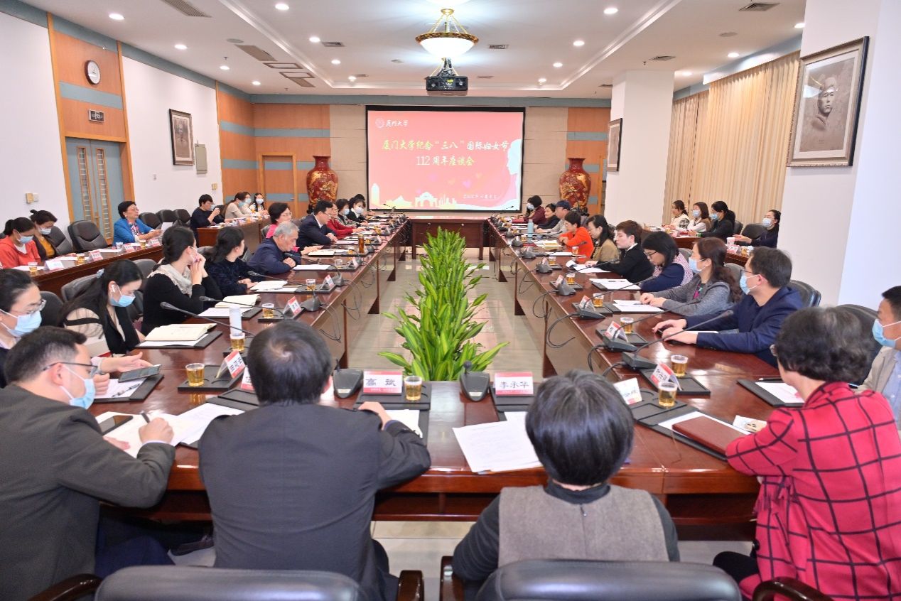 首先,校妇委会主任、校工会副主席陈小芬汇报了2021年我校妇女工作开展情况:2021年我校妇委会注重加强妇女组织建设,完善校院两级妇委会体系;主动作为、通过组织各项活动,助力女性成长,展现厦大女性风采,贡献厦大巾帼智慧;多渠道关心关爱女同胞,促进我校女性的身心健康。她还汇报了2022年校妇女工作思路:校妇委会将继续加强自身建设,进一步增强妇女组织的凝聚力和感召力,维护女性合法权益,树立优秀女性典型,绽放巾帼风采,开展新颖多样的女性素质提升活动,丰富校园文化生活,立志于促进妇女全面发展,助力学校“双一流”建设。