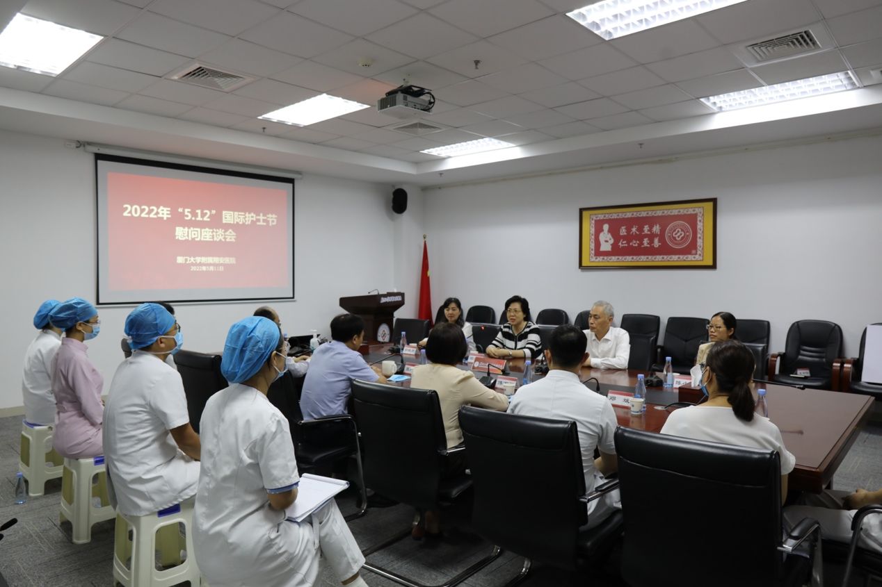 张国君执行院长首先代表医院向校党委、校工会的关心和慰问表示感谢。他介绍,医院开业三年来,一直致力于高起点严标准引进人才、锻造专业护理专业人才队伍,力争打造出厦大直属医院特有的、备受人们信赖和社会赞誉的人文护理服务品牌,从而推动护理工作创新发展,带动全院各项工作全面向好发展。