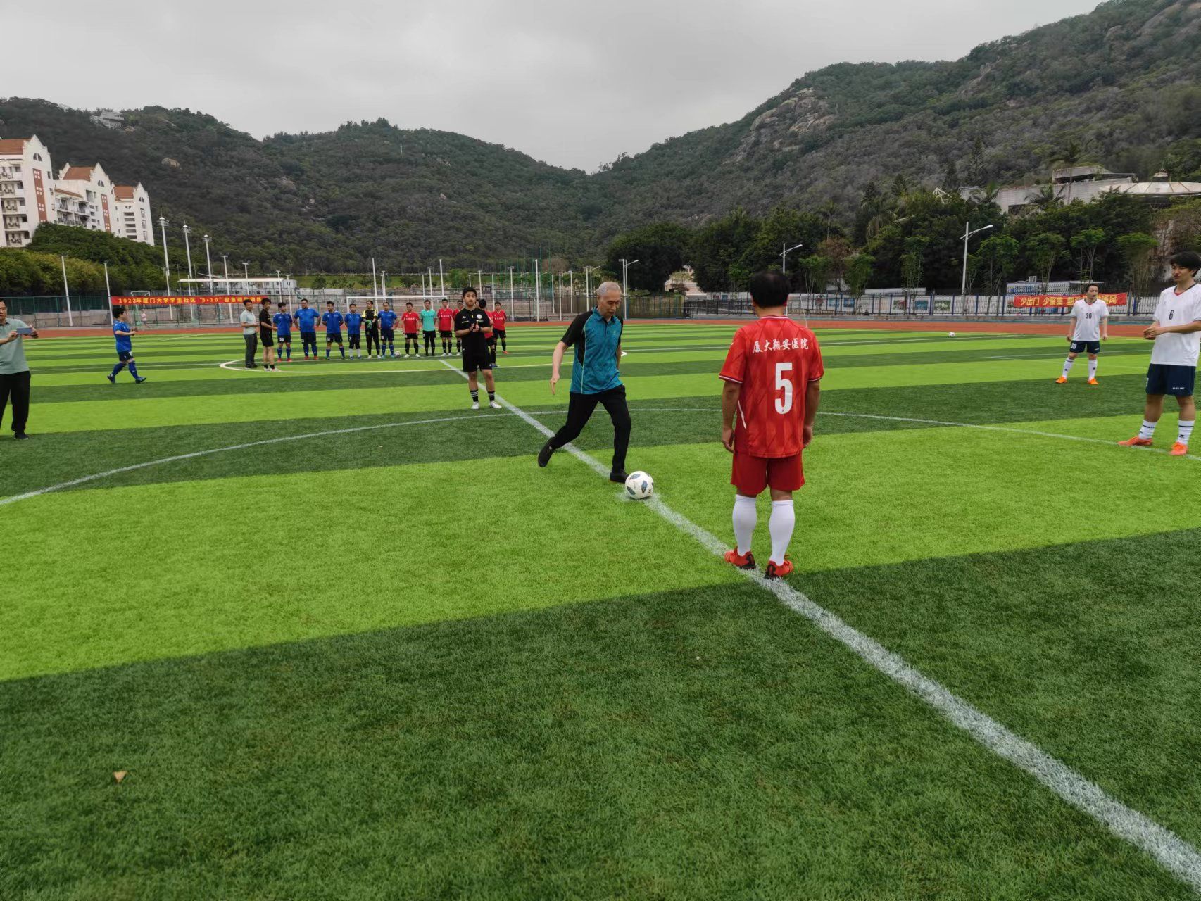 为深入学习贯彻习近平总书记关于全民健身、健康中国的重要论述,建立平台促进教职工相互沟通交流、切磋球技、跨学科合作、释放压力增强身心健康,增强教职工强身健体意识和团结协作精神,营造和谐、积极向上的校园氛围,由校工会举办、校教职工足球协会承办的“喜迎二十大 建功新时代”厦门大学第四届“嘉庚杯”教职工六人制足球赛于5月22日下午在海韵学生公寓足球场正式拉开帷幕。