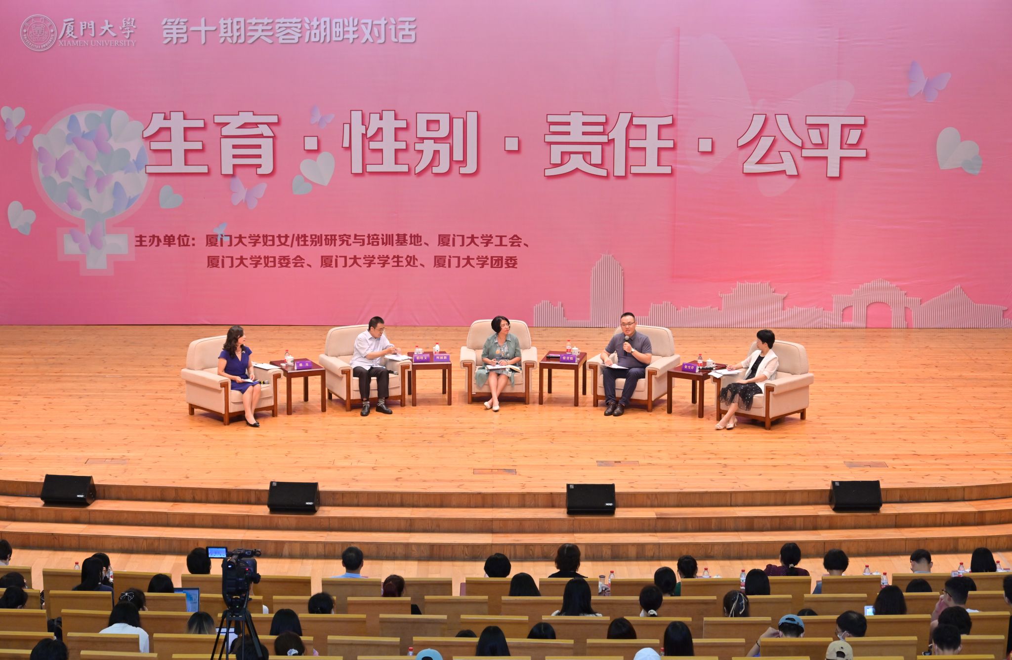 为充分认识优化生育政策、促进人口均衡发展的重要意义,更好地推进“实施三孩生育政策及配套支持措施”的贯彻落实,7月4日晚,以“生育·性别·责任·公平”为主题的第十期芙蓉湖畔对话,在厦门大学科学艺术中心音乐厅顺利举行。本期对话邀请相关领域的四位专家来到现场,带领听众走进性别平等的生育观,探讨生育责任与性别平等、公共政策与服务支持。本期对话由厦门大学妇女/性别研究与培训基地、校工会、校妇委会、校学生处、校团委联合主办。校党委常委、副校长、校工会主席、厦门大学妇女/性别研究与培训基地主任邓朝晖,原校党委副书记陈力文、赖虹凯,原副校长、厦门大学校友会副理事长詹心丽等领导和近300名师生参加了现场活动。