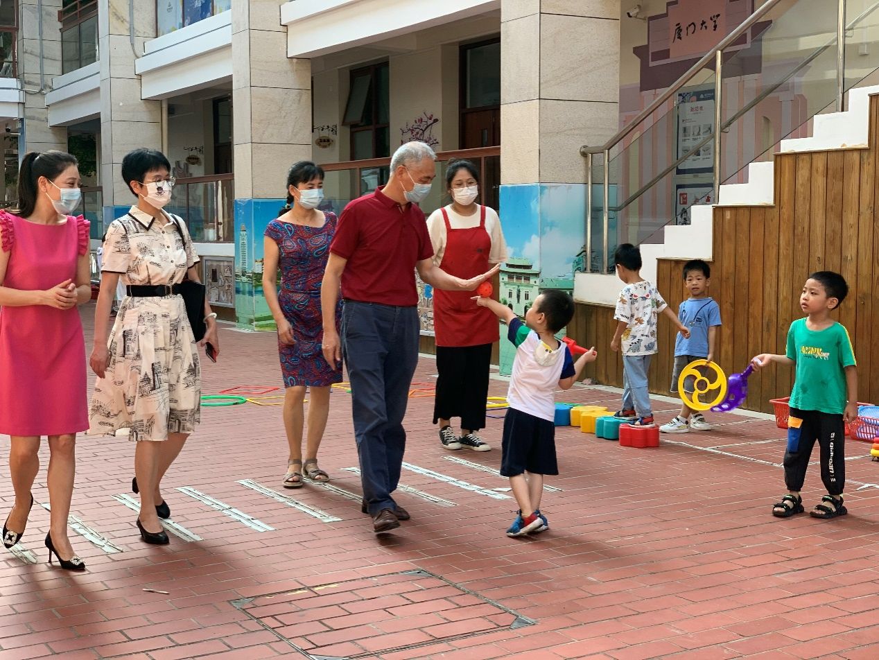 在厦大幼儿园王美玲园长的陪同下,刘春玲主席参观了孩子们的学习教室和活动室,并与小朋友进行互动,对值班教师在暑期坚守岗位表示赞赏,叮嘱她们要注意防暑降温,并对暑托班开展的形式多样的活动表示肯定。
